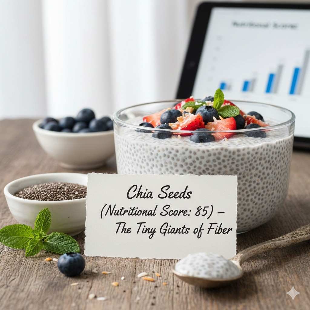 Chia Seeds (Nutritional Score: 85) – The Tiny Giants of Fiber