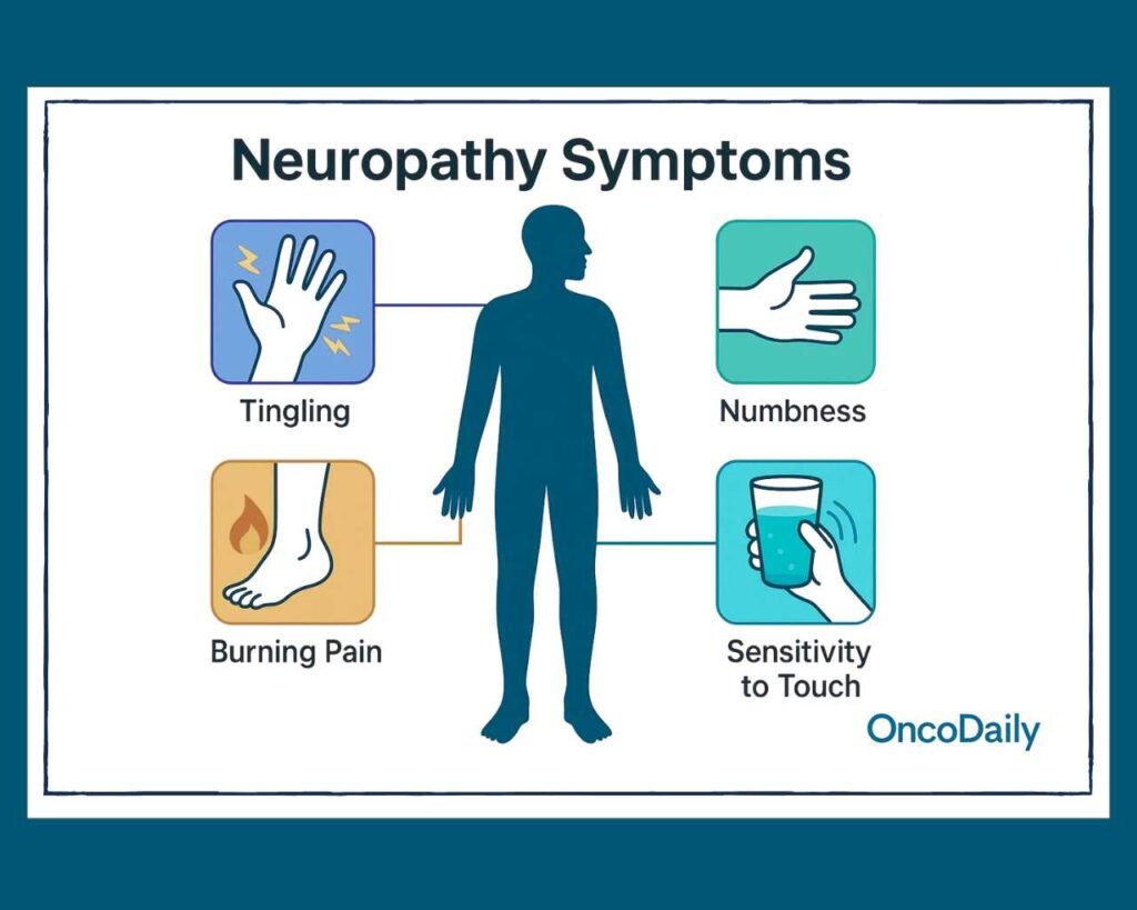 Onset of chronic neuropathy occurs at a dose level of 780-850 mg/m2 and involves 10-15% of patients. Numbness, paresthesia, and pain in hands and legs is experienced by patients. In severe cases, these neuropathies hamper normal functions such as writing, grasping things, wearing clothes, and even walking. In fact, it was observed that 68% patients were affected by peripheral neuropathy after one month of chemotherapy, while this number went down to 60% and 30% after three and six months, respectively.